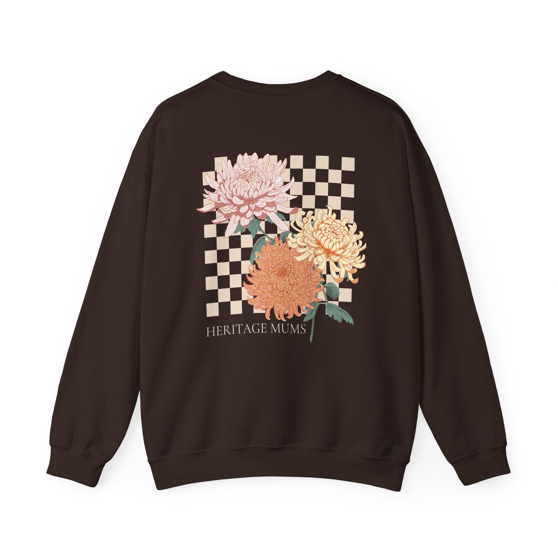 Heritage Mums Checker Board Chrysanthemum Unisex Crewneck Sweatshirt